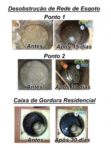 Descola e degrada toda gordura alojada nas paredes das caixas de gordura, tubulações e fossas sépticas, reduzindo a incidência de baratas e eliminando o Mau cheiro. ECOMIX G acaba com a necessidade do uso de caminhões limpa fossas e todo transtorno e sujeira causados por eles.